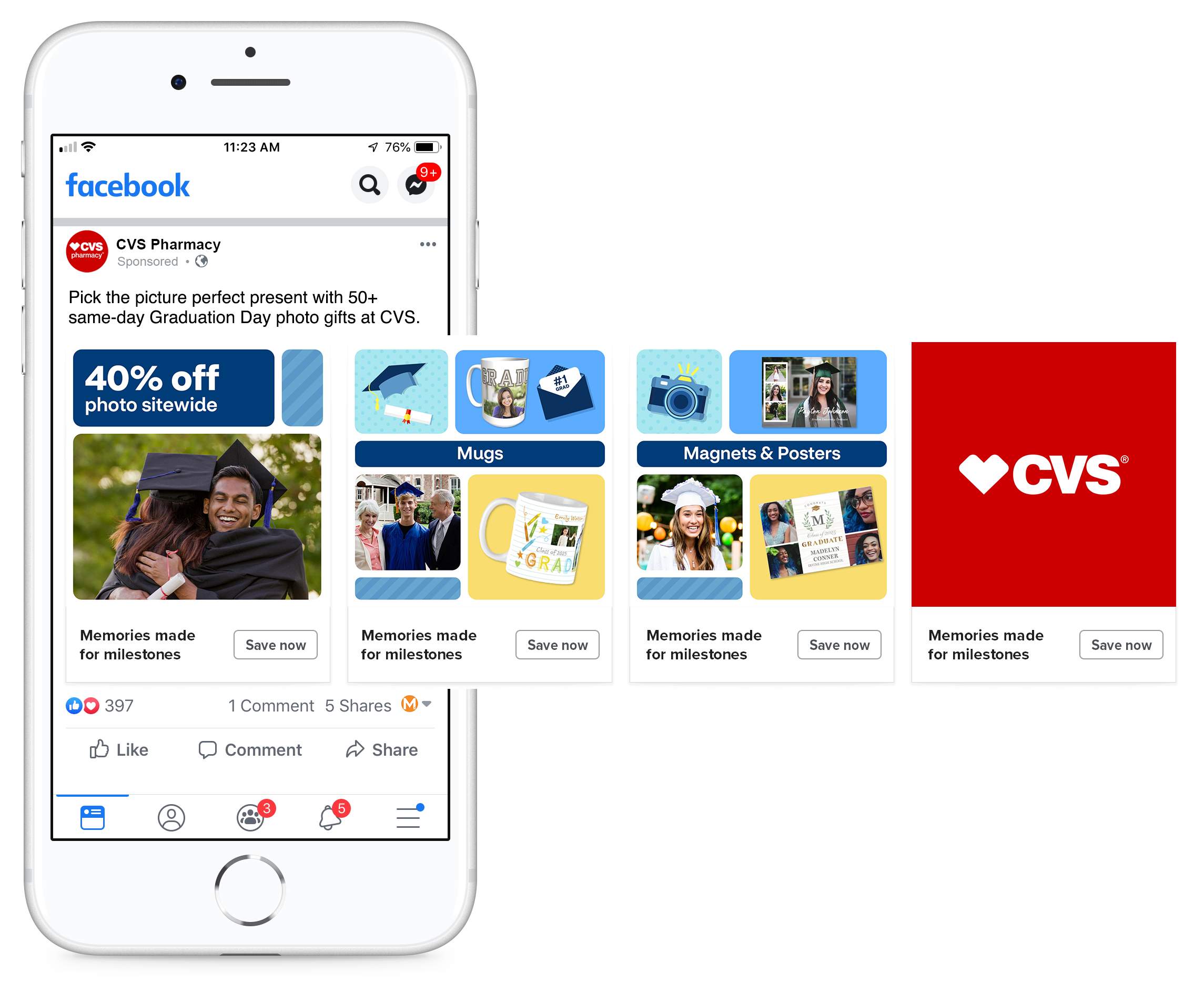 Develop a 360 digital campaign for CVS Photo focused on sales and customer retention during the Moms, Dads, & Grads season. The campaign duration was ten weeks with weekly rotating promotions and offers, while ensuring cohesive branding across all digital banners and social assets.
